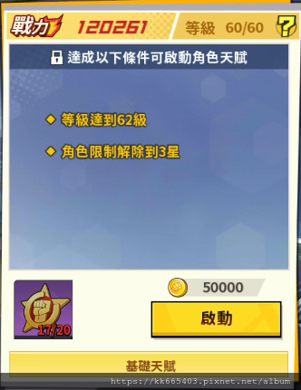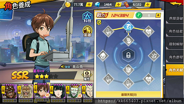 角色天賦的作用在於增加此角色的各種能力,角色天賦的解鎖方法是先將我們的戰隊等級(並非該角色等級)提升到62級以及星數提升到3星(培養方法可以參考這篇 一拳超人:最強之男英雄怪人角色養成方法 )