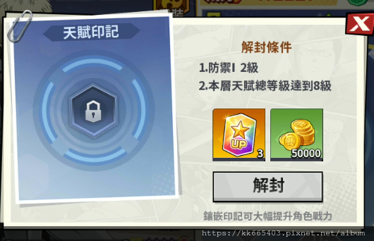 解鎖角色天賦還需要消耗各種類型的徽章(首領挑戰和活動取得)和50000金幣