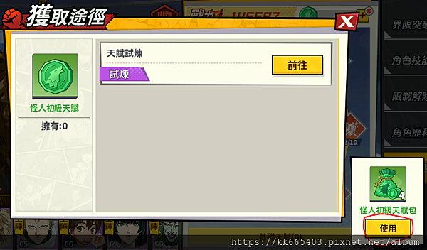 升級天賦需要消耗英雄、怪人天賦,天賦可以在探索的天賦試煉取得