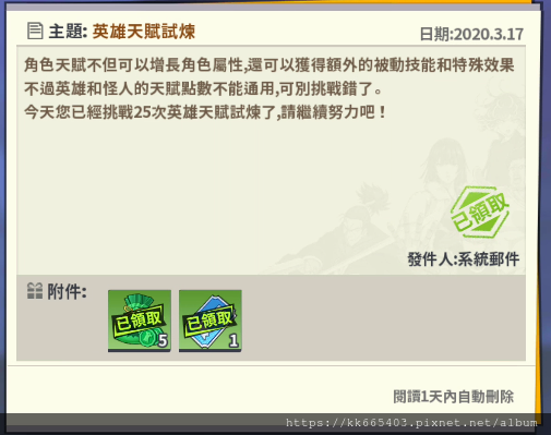 每天挑戰25次天賦試煉在信件區可以領到天賦包和天賦增幅(固定時間內增加獲得的天賦點)